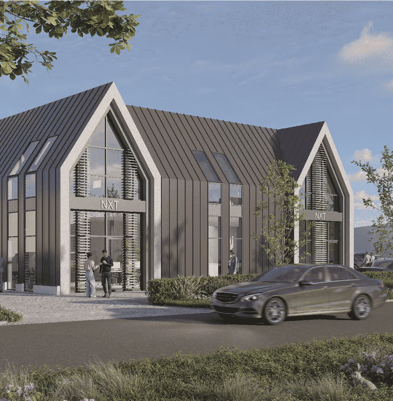 De bedrijfslofts zijn omringd door een groene omgeving.