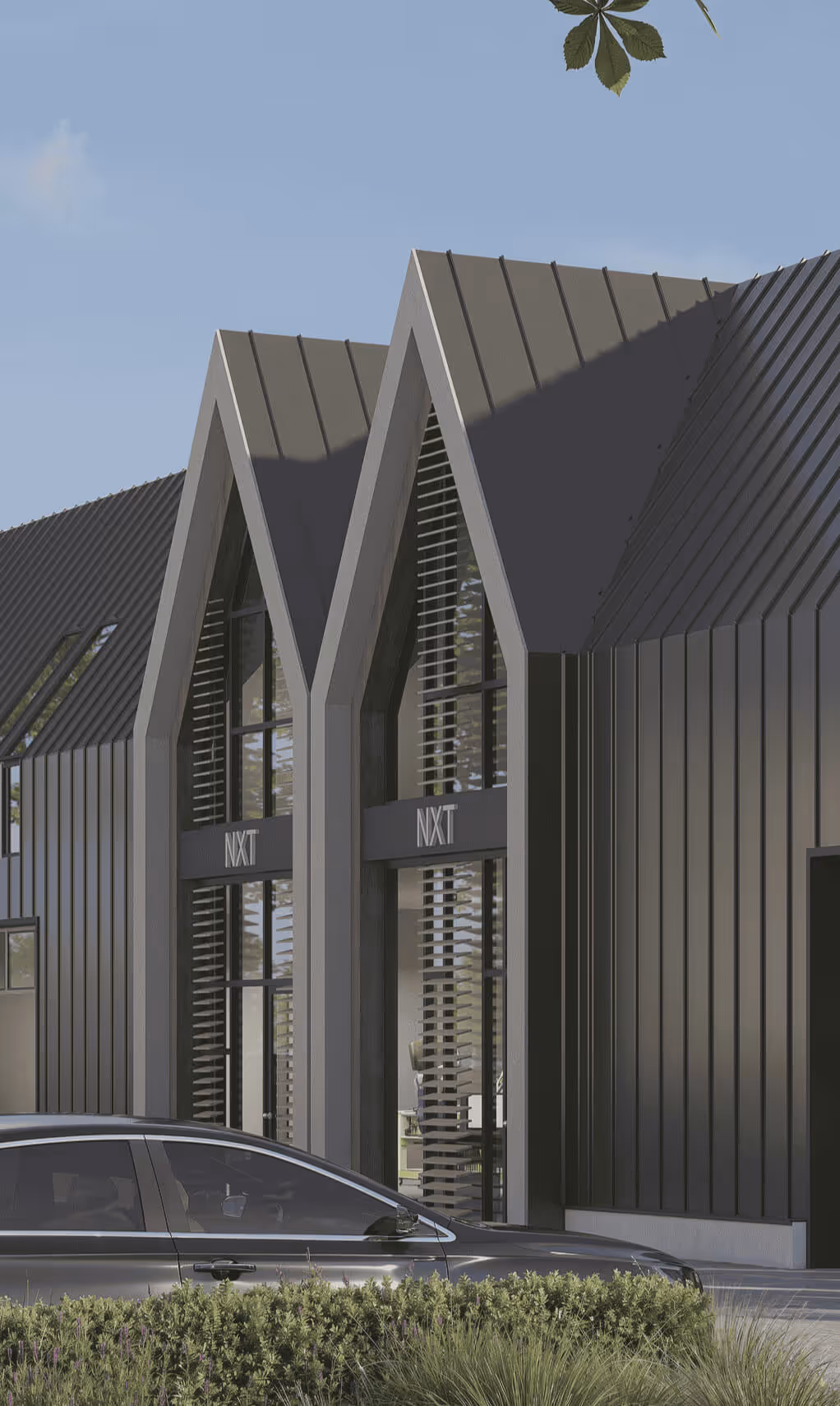De kantoorlofts zijn omringd door een groene omgeving.