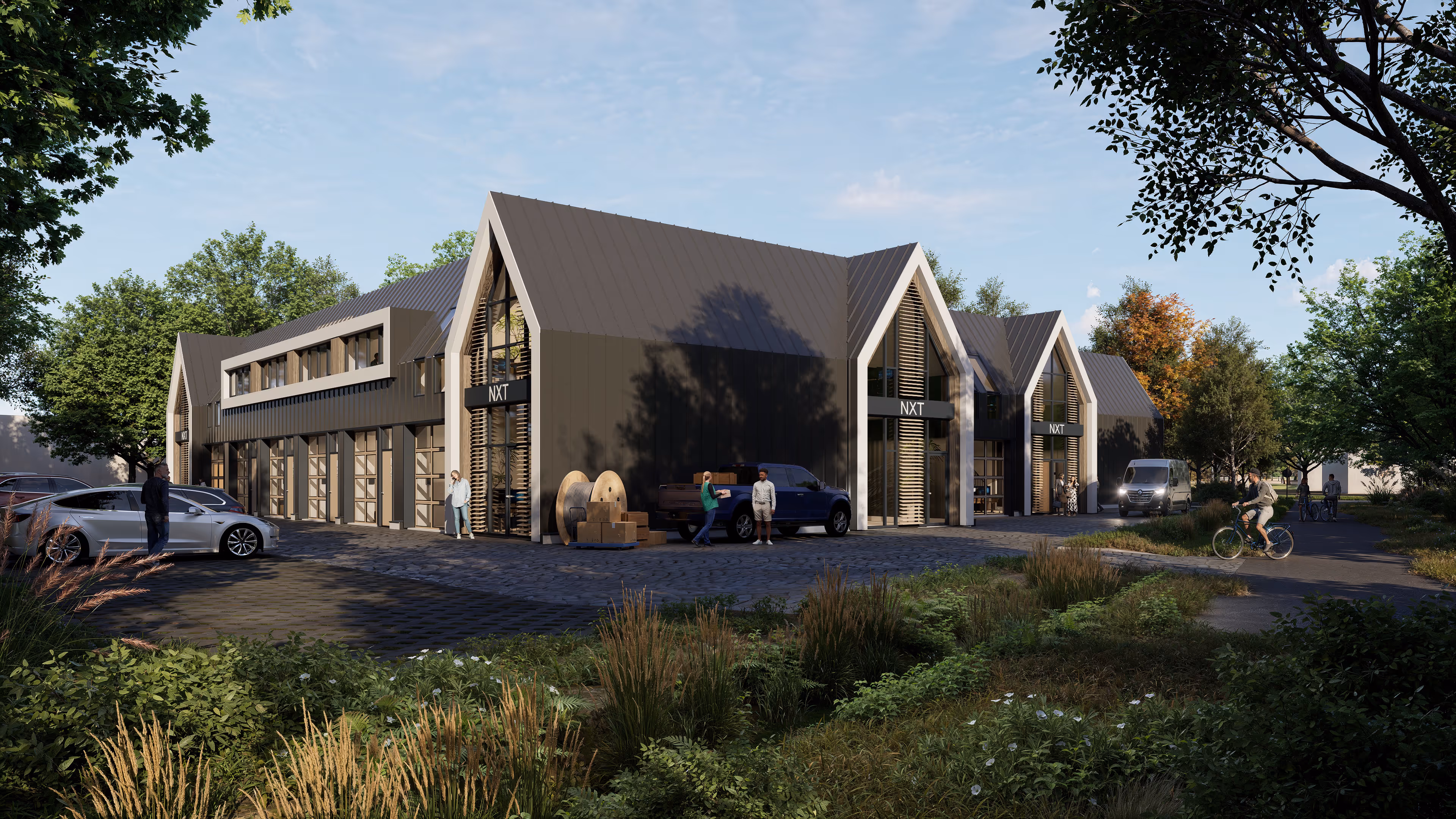 De bedrijfslofts zijn omringd door een groene omgeving.